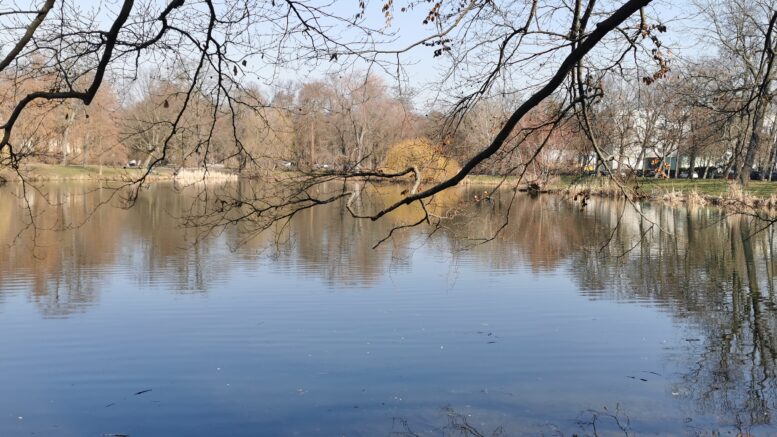 Die Rietzschke durchfließt aus Wiederitzsch kommend den Park, doch das Flussbett liegt leider meisst trocken. Wir können der Rietzschke wegen Bauarbeiten am Weg entlang des Flüsschens nur ein Stück folgen und verlassen den Park schon bald.